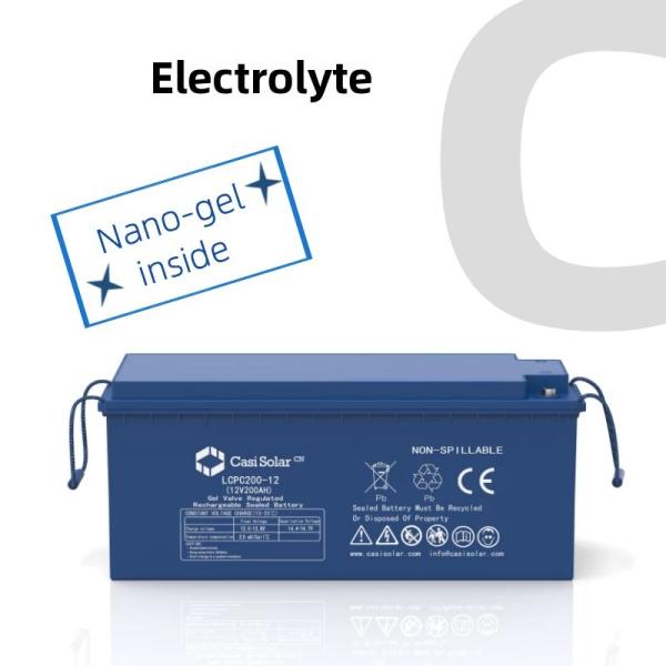 The electrolyte of Casisolar’s 12 Volt 50 Ah Deep Cycle Gel Batteryuse patented formula and the main component of nano-gelled imported from German, which has the consistency and appearance of petroleum jelly. Nano gel helps batteries have stable performance at high and low temperature and 5 years longer than AGM battery. |